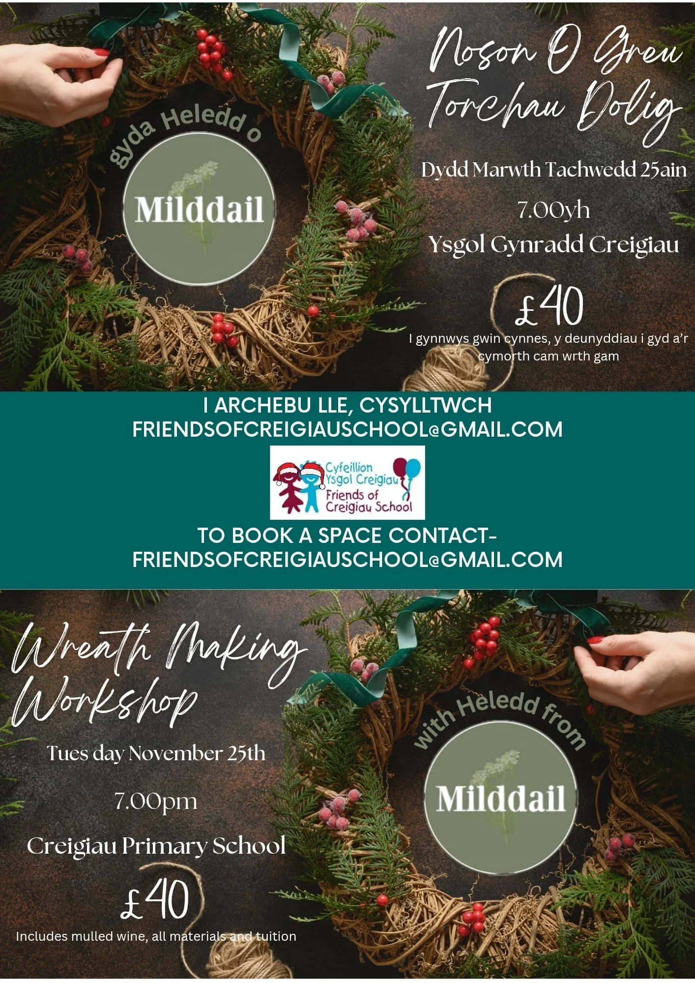 To book a space contact: friendsofcreigiauschool@gmail.com